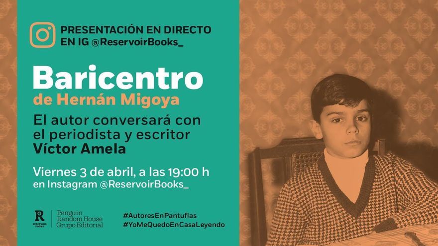 A las 19:00h, el escritor Hernán Migoya presentará su nuevo libro Baricentro (Reservoir Books). Lo hará acompañado del periodista Víctor Amelo, y se podrá ver en el Instagram de Reservoir.