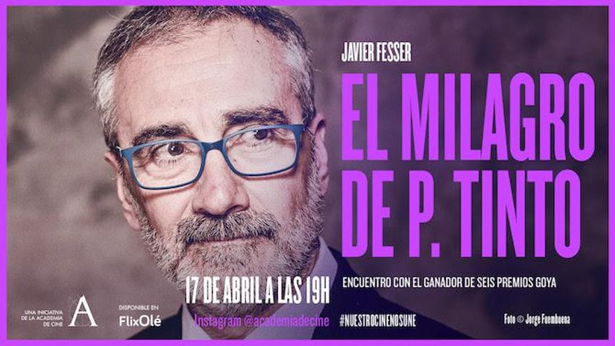 A las 19:00h, el director y guionista Javier Fesser protagonizará un encuentro en el que hablará de El milagro de P. Tinto, surrealista comedia que logró el Goya a los Mejores Efectos Especiales. Una iniciativa de la Academia de cine dentro de la campaña #NuestroCineNosUne. La cinta está disponible en Flixolé.