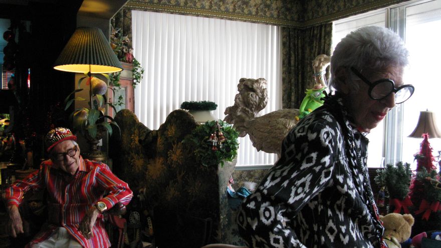 El director de documentales Albert Maysles [Salesman (1968), Los Rolling Stones (Gimme Shelter) (1970), Grey Gardens (1975)] le dedicó su última película antes de morir el pasado mes de marzo, contribuyendo así a aumentar el mito de Apfel. En la cinta no sólo se puede ver su perspectiva del mundo de la moda, sino que también relata la historia de su vida y la relación con su marido, que también sigue vivo con casi 100 años y comparte su notable sentido del humor: “No soy quien para juzgar: evidentemente es mejor ser feliz que vestir bien”, dice Apfel. No mucha gente dentro de la industria puede enunciar tal afirmación.