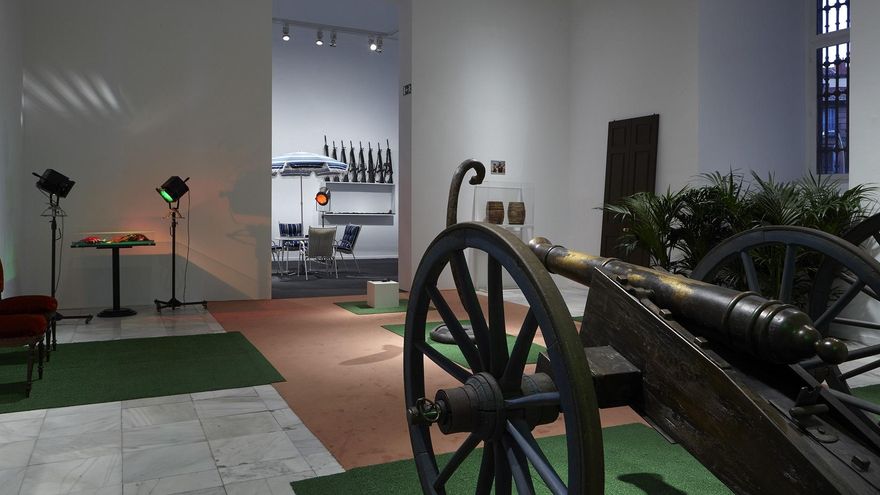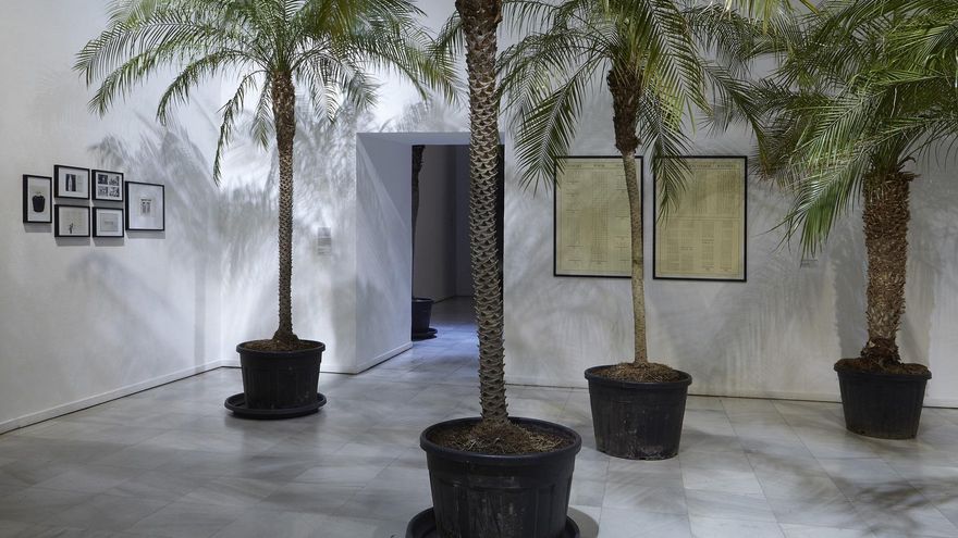 Otra parte es una extensa e indescriptible documentación. Porque de trabajos efímeros, como un museo trazado en la playa y borrado por la marea, solo pueden quedar el documento. Pero a ello se le suman escritos, documentación adicional sobre las obras o su disposición. Y documentos que forman parte de esas obras. Es bien sabido que el Reina Sofía tiene cierto apego por las vitrinas documentales. Aquí hay bastantes vitrinas, pero los papeles impresos se desbordan por toda la exposición.