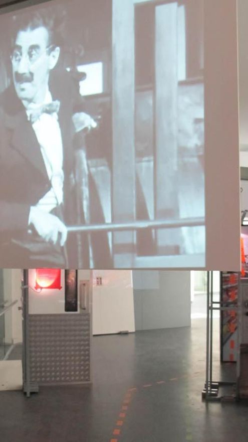 Una nevera refleja cómo las materias primas no fósiles se utilizan principalmente para los biocombustibles y no para la elaboración de alimentos biológicos para las personas. Un cubo de basura hace alusión a los residuos que se multiplican en el primer mundo y que suelen acabar en vertederos de las zonas más pobres. “Por ejemplo, muchos restos de las Torres Gemelas acabaron en China y La India”, sostiene Medina. Y, por último, una escena de cine antológica de los Hermanos Marx en Más madera que nos invita a cuestionarnos nuestra forma de vida: ¿destrozar un tren para que la máquina de vapor no se pare?