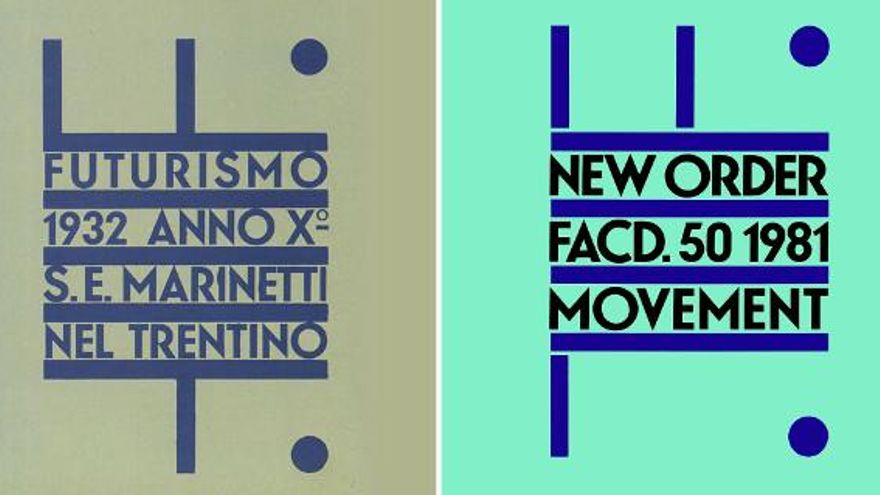 Muchas décadas más tarde el diseñador inglés Peter Saville fusilaría sendos trabajos de Depero para la revista La Dinamo Futurista (1933) y el cartel de un homenaje a Marinetti (1932) para las portadas del primer sencillo -Procession, 1981- y el primer elepé -Movement, 1981- de New Order. Más sobre esto cuando lleguemos a Nueva York.
