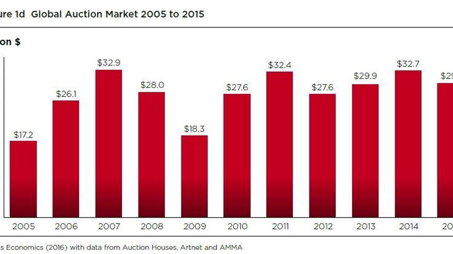 En realidad, el montante del arte realmente contemporáneo, de artistas vivos para entenderse, en las subastas europeas y norteamericanas nunca ha pasado del 16% del total y tanto Sotheby's como Christie's, las dos primeras casas de subastas del mundo, vendieron durante el 2015 cerca de un 20% menos en arte contemporáneo que en el 2014. Durante el 2016 la situación se mantuvo, pero no se recuperó.