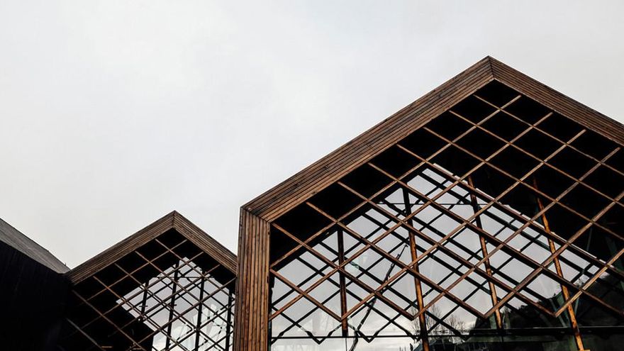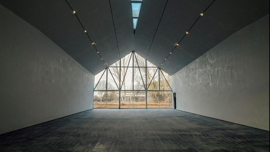 Diseñado por el estudio internacional de Alejandro Zaera Polo y Maider Llaguno, por fuera es un espacio expositivo de 2.800m2 con cinco cubiertas de alerce a dos aguas y paredes de cristal donde el paisaje se refleja. El resultado es que el edificio se funde con el entorno, es invisible hasta que lo tienes delante, y parece al mismo tiempo un edificio holandés del s.XVI y otro del XXI.