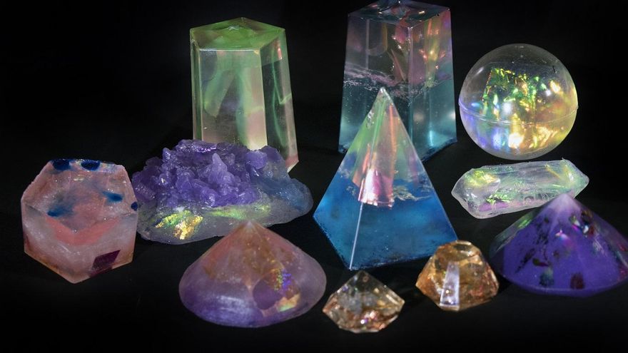 Entre dos de las salas principales, un espacio bastante íntimo creado por la estructura del edificio, Marian Garrido (1984) ha montado Souvenirs of future nostalgia que es literalmente de lo más brillante de la exposición. Son piedras translúcidas y casi iridiscentes en diferentes colores que cuentan historias sobre viajes en el tiempo, falsos recuerdos, lo posible-imposible y lo virtual-real. Los objetos parecen muy manuales, pero el papel pintado que tapiza el pequeño espacio habla de digitalización. Una tensión muy actual.