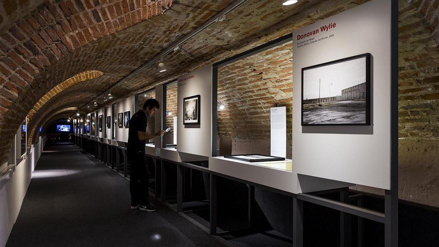 Hasta aquí el apunte histórico, presente en la exposición dado que esta se ha montado siguiendo un riguroso orden cronológico. La disposición es sencilla pero efectiva. Bajo las bóvedas de El Canal se disponen hileras de mostradores normalizados con los siguientes contenidos: una hoja de contactos, una lupa, una historia de la fotografía en cuestión, su reproducción en una revista y una ampliación de la fotografía elegida. Es sencillo y funcional en días normales donde la asistencia parece continua pero moderada. Con más afluencia habrá que esperar a una lupa libre.