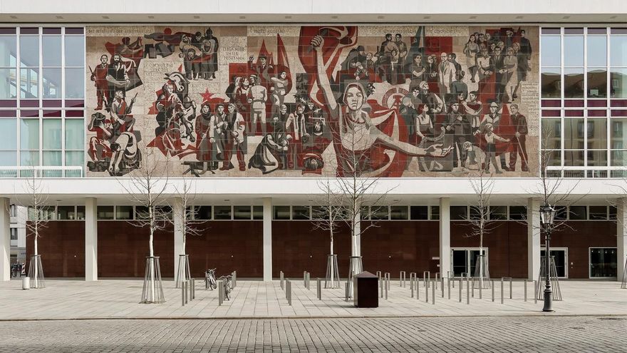 Otro mensaje muy abierto a la interpretación es el mural de la Universidad Técnica de Dresde de 100 metros cuadrados firmado por Alfred Hesse y Erich Gerlach. “Wilhelm Pieck habla a los estudiantes”, se titula el mural. En él, ninguna de las figuras representadas mira a Pieck, presidente de la RDA y líder del Partido Socialista Unificado de Alemania.