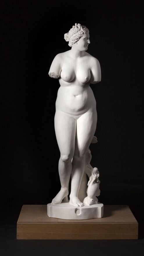 Pero este es solo el marco de Canon, el mayor protagonismo lo tienen las esculturas. Son reproducciones en yeso de esculturas clásicas realizadas con los moldes que posee desde hace siglos la Academia de San Fernando. Clasicismo de Grecia y Roma y también el neo-clasicismo del italiano Canova en el paso del siglo XVIII al XIX. Sí, son clásicos... pero transformados. El Discóbolo de Mirón es exactamente el mismo excepto que su rostro es negroide. La Venus de Milo tiene las arrugas y flacideces propias de una edad avanzada y La Venus de Medici aparece bastante entrada en carnes. La Venus de Esquilino está embarazada y El Niño de la Espina es ahora La Niña de la Espina. Todo esto tiene un punto divertido, pero la pregunta que lanza sobre la misma naturaleza del canon es seria.