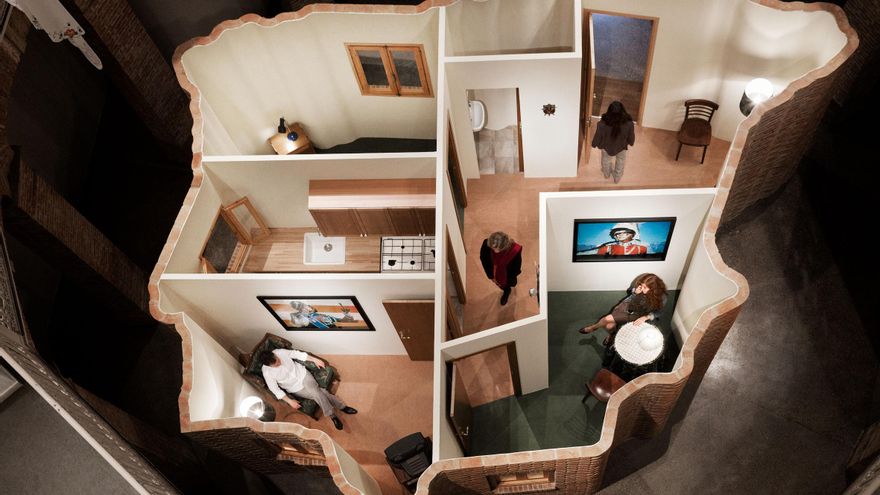 Su capacidad para trabajar a fondo con un espacio ya se vio en el 2011 en la sala valenciana La Gallera, donde instaló Actos Heroicos. Esta obra se presentaba como una pared de ladrillo de unos dos metros y medio de alto y de contorno irregular que, vista desde la galería del primer piso, dibujaba un mapa de la Península Ibérica. La pieza, solo accesible por la frontera francesa, se distribuía en varias habitaciones que contenían diferentes obras, como Nacionalismo doméstico o Delirios de grandeza. En fin, que esto de Alcalá 31 no es una ocurrencia gratuita, sino una que responde a una línea de trabajo coherente. No es que tenga mayor importancia, pero ayuda a contextualizar lo que puede verse hoy.