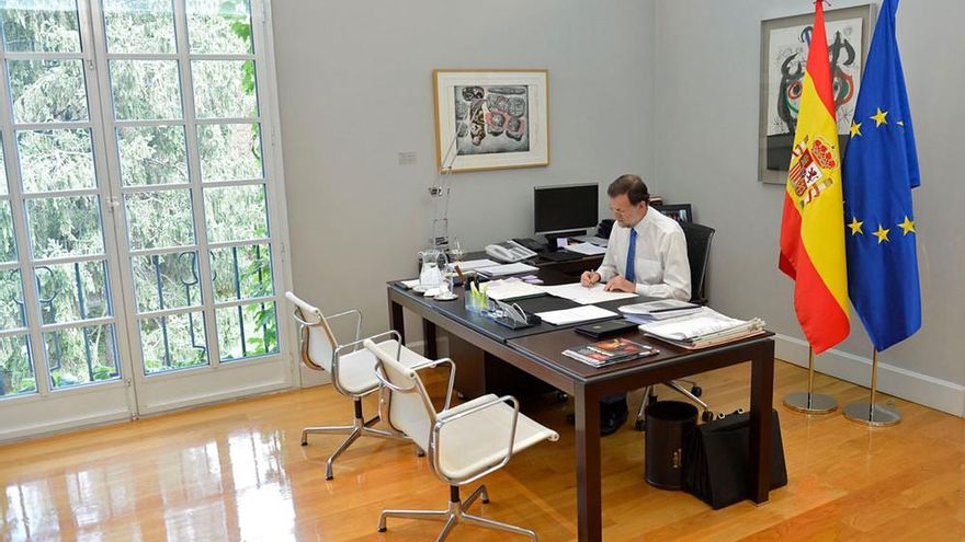 El expresidente popular llevó a cabo una gran reforma del complejo monclovita después de mudarse de su chalé adosado en Aravaca. Si Zapatero descargó el estilo barroco de las estancias heredadas de Aznar, el equipo de Rajoy se encargó de seleccionar 22 obras nuevas del Reina Sofía que todavía hoy encabezan las partes más visibles del edificio.