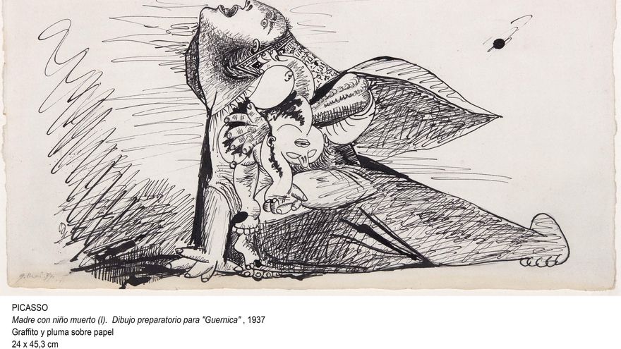 Esto mismo puede servir para La balsa de la Medusa (1818-19) de Gericault, la Nefertiti de Berlín o la Victoria de Samotracia del Louvre. O, directamente relacionadas con esta exposición, algunas Pietás y Mater Dolorosas que ha ido generando la cultura cristiana a través de los tiempos. Son imágenes que sí, conmueven sin prejuicios, no aparecen muchas en cada siglo y el Guernica es una de ellas.