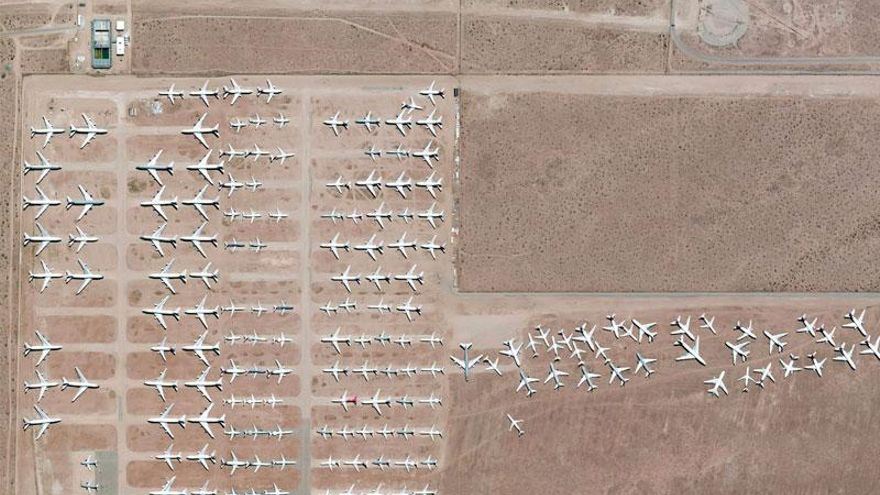 En 2013, Benjamin Grant rescataba este concepto para su proyecto Daily overview, donde publica cada día uno de esos retratos. En su selección para esta muestra, Grant los ha dividido en cinco grandes temas: comida, energía (las minas), deshechos, transporte y urbanismo. Como es natural, España protagoniza varios momentos estelares, desde la malla del Eixample barcelonés a la planta de energía termosolar Gemasolar en Sevilla.