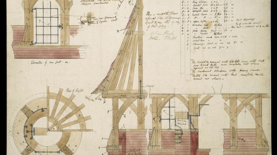 Tras el mural de Deller, que no está propiamente en la exposición sino a su entrada, se encuentra la primera sala, que va desde su nacimiento hasta su matrimonio con Jane Burden en 1860. Es la etapa formativa de Morris, que especial énfasis en el medievalismo que inspiraba buena parte del movimiento romántico inglés. Podían ser las novelas historicistas de un Walter Scott, bailes de disfraces medievales o edificios que imitaban la era Tudor. En el caso de la plástica y la arquitectura, la primera gran figura fue Augustus Pugin (1812-1842), un joven prodigio que con solo 18 años fue contratado para decorar nada menos que el nuevo e inmenso Westminster Palace que conocemos.