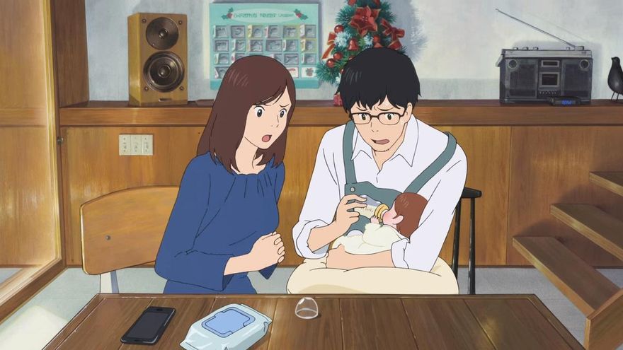De la misma forma, también aprovecha el escenario para reflexionar sobre el momento histórico. Gran parte de la película se desarrolla en la casa de la familia protagonista. Y sin salir de allí, Hosoda hace evidente la importancia de los cuidados y del reparto equitativo de su peso. En su película subyace todo un discurso construido a base de detalles y pequeñas frases, sobre la necesidad de un cambio de mentalidad para con las viejas paternidades. Sobre su abierta y urgente implicación en la educación y el hogar.