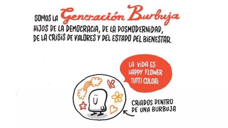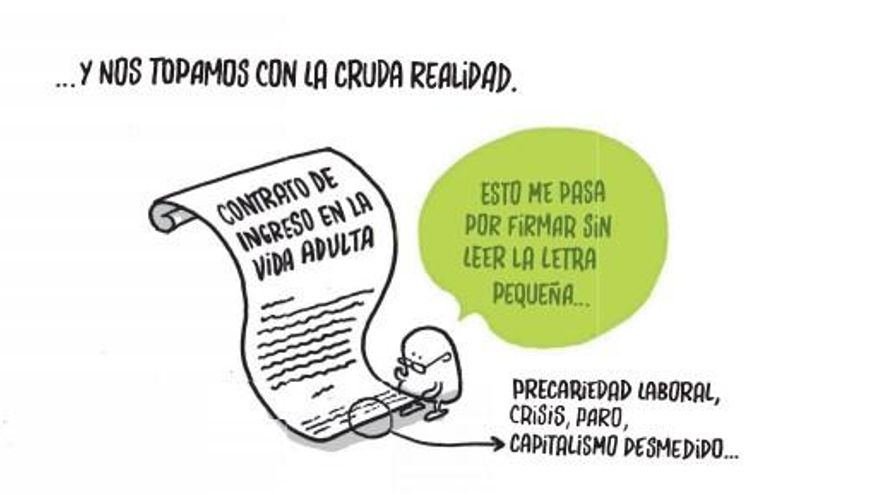 “En la antigua China, cuando un pobre pedía a Lao Tse un pescado para poder comer, el sabio no le daba un pescado, sino una caña, y le enseñaba a pescar. A nosotros nos han dado un montón de pescado, pero han tirado la caña al río”. El proverbio, que actúa como broche del libro, es el que resume el carácter autocrítico que diferencia esta obra de las anteriores. Es el ejercicio más personal y blanco del dibujante, que retrata el reverso del monstruo de la crisis con el germen de la llamada 'generación burbuja'.