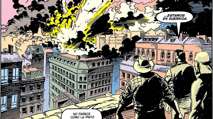 Asimismo, el cómic recalca la teoría de que la intervención alemana en la Guerra Civil no estaba realmente comprometida con la causa, sino que, más bien, utilizó la contienda como campo de pruebas para experimentar con el armamento que más tarde emplearían en la Segunda Guerra Mundial. “Vamos a Guernica, a ver cómo nuestros españoles asesinan a los españoles del otro bando”, afirma el comandante nazi encargado de la operación.