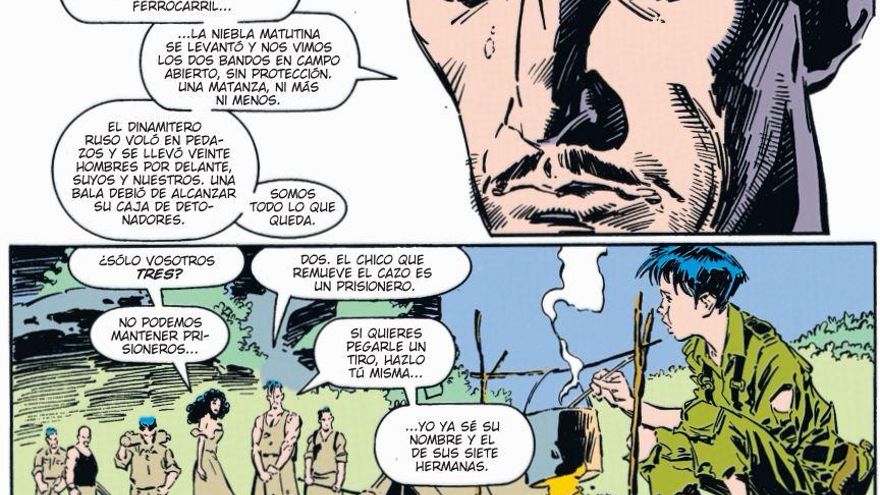 Así se puede apreciar en Sangre, arena y garras, una reedición de Panini Cómics que recupera tres grapas publicadas originalmente por Marvel en 1991. En esta no aparece Francisco Franco, ni Emilio Mola, ni Manuel Azaña, pero no lo necesita para retratar la crueldad del periodo. Especialmente, con el dibujante Marc Silvestri y el historietista Larry Hama, hijo de emigrantes japoneses, que ya conocía el horror después de haber combatido en la Guerra de Vietnam.