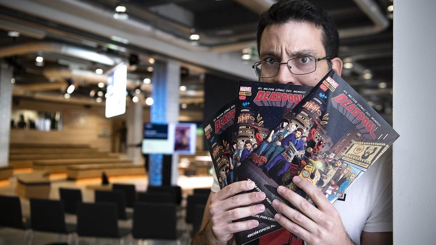 Por los pasillos se pasean capazos llenos de cómics de Deadpool enterrados entre limones de la huerta de su abuelo. Pasa más de media hora desde la cita acordada para la entrevista y Salva Espín desaparece del auditorio, para sorpresa de los encargados de prensa. Lo encuentran en el camerino charlando con Chema Alonso, el jefe de seguridad digital de Telefónica. También está el representante del artista y el humorista Arturo González Campos, que se toma la licencia de responder en alto (y cabreado) a las preguntas dirigidas a Espín. “Tranquilo, que solo te he interrumpido 30 segundos”, replica. Y, bajo estas circunstancias, con oyentes y la exigencia de que “no hay mucho tiempo” a pesar de todo el que se ha perdido, comienza la entrevista.
