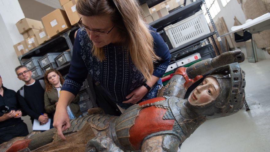 Alicia Ancho ha reconocido que, al acudir a la iglesia tras ser alertados por un guía turístico, no esperaba encontrarse al San Jorge en ese estado. “No sé cómo volví ese día de Estella”, ha señalado Ancho, quien se ha preguntado “cómo alguien tiene la osadía de hacer eso con una escultura” que es “única” en su género en Navarra.