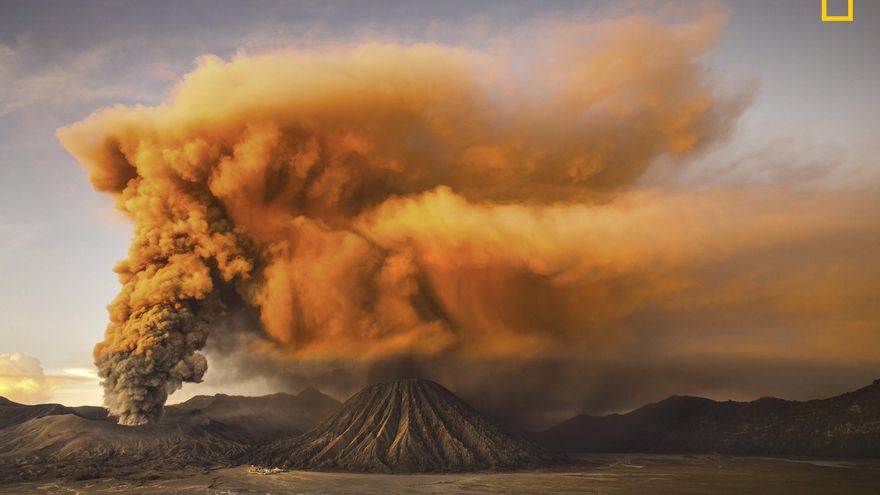 “El Monte Bromo es un pequeño pero activo volcán en Java Oriental, Indonesia. El 17 de enero de 2016, me encontraba cerca cuando un aumento de la actividad sísmica desencadenó una alerta. Esta foto fue tomada desde el patio de un hotel local, donde yo estaba esperando con mi cámara. Justo cuando el volcán entró en erupción, las cenizas parecían brillar con luz propia. Esta foto es muy especial para mí, una rara erupción del Monte Bromo con excelente iluminación”.