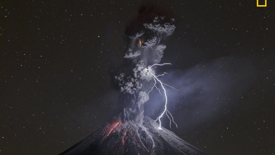Según recoge National Geographic, el fotógrafo se encontraba a 12 kilómetros del cráter cuando de repente escuchó un fuerte estruendo y fue testigo de un enorme rayo volcánico.