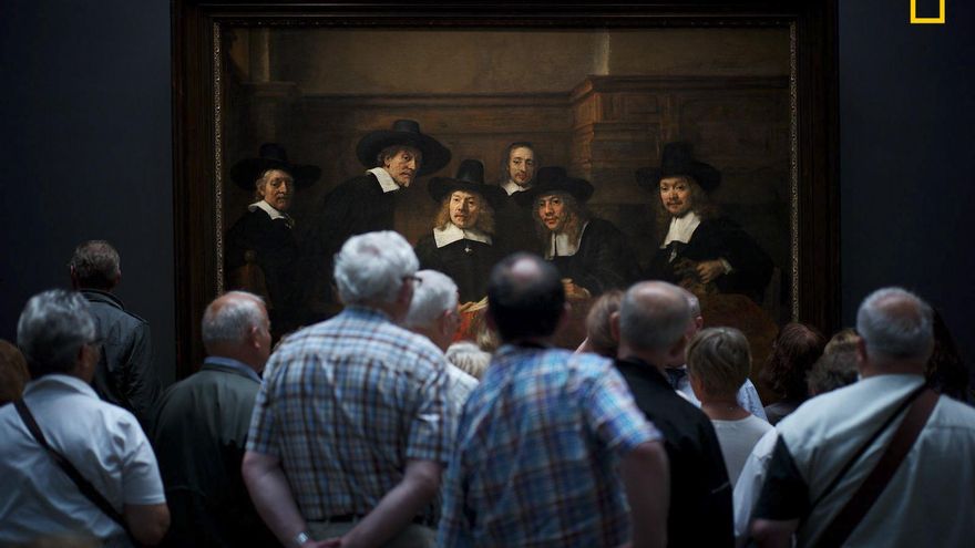 “Una multitud de espectadores se concentra frente a la obra maestra de Rembrandt, Los síndicos de los pañeros, en el Rijksmuseum de Ámsterdam. Mientras observaba la escena me reí cuando me di cuenta de que las personas en la pintura también parecen estar mirando con curiosidad a los visitantes. Me las arreglé para disparar dos veces antes de que la audiencia se alejara. Una de las fotos está fuera de foco, pero esta era perfecta”.