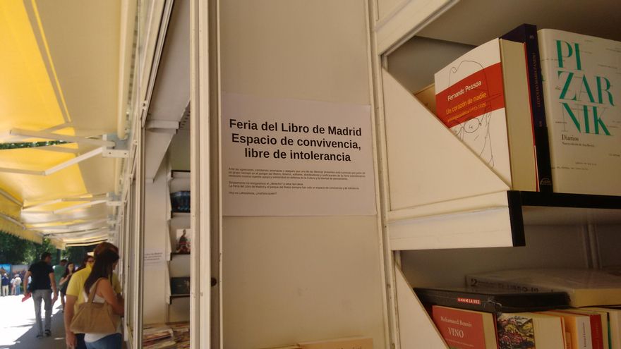 “Feria del Libro de Madrid. Espacio de convivencia, libre de intolerancia”. Así reza el cartel que han colocado varias librerías en la feria madrileña del Retiro. Bien visible, no escondido en una esquina de las casetas. Fue redactado la primera semana  por La Malatesta a raíz de las agresiones que sufrieron por un grupo de neonazis cuando montaban el espacio y fue inspirado por el empuje de otras librerías con un catálogo lleno de ensayos y novelas políticas. Desde entonces, todas ellas están alerta ante cualquier otro tipo de agravio. Los libreros se acompañan unos a otros cuando termina la jornada e, incluso, desde el Gremio se han movilizado para poner más seguridad y varios agentes custodian estas casetas cada día. Porque, como finaliza el texto, “Hoy es La Malatesta, ¿mañana quién?”