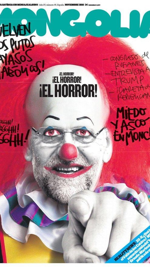 En Mongolia, siempre dispuestos a no dejar que sean los extranjeros los que se llevan el premio de la novedad, advertimos de que había un payaso terrorífico en España que, a pesar de su cara de papanatas, si revisabas su currículo al frente del Estado, acojonaba más que aquellos adolescentes descerebrados de América del Norte: ni más ni menos que Mariano ‘vengo a comerme tus ahorros’ Rajoy. Ahí estaba, al frente del país, señalándonos con sorna y malicia, mirándonos con sus ojos endemoniados y un poco así como de “me faltan tres hervores, pero los que tengo me bastan para acabar de una vez por todas con el Estado de bienestar”. Y ahí está el tipo aún. Y se sigue riendo como loco.“