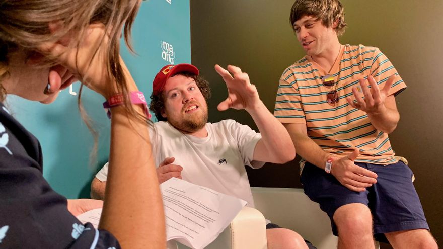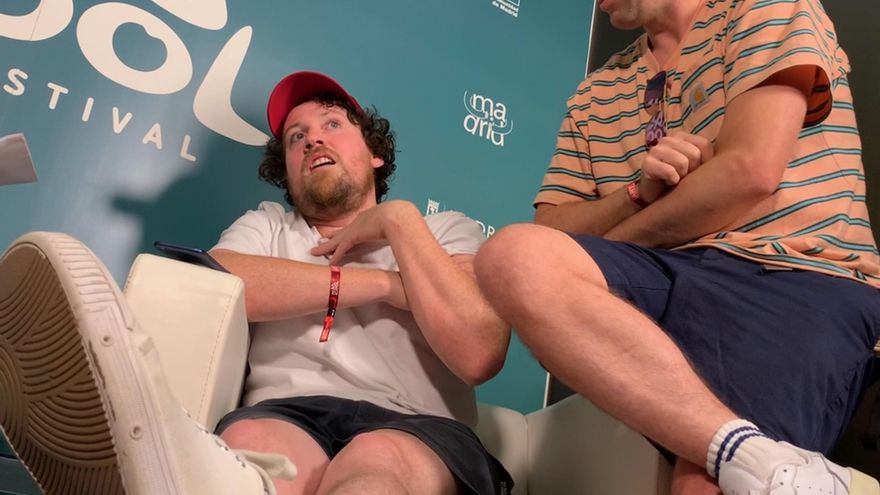 Hablamos con el líder de Metronomy, Joseph Mount, y Oscar Cash (teclados) momentos antes de que salgan al escenario madrileño desafiando a un sol de julio que no quiere ponerse. Lo hacen enfundados en un chándal que no se ve precisamente muy veraniego.