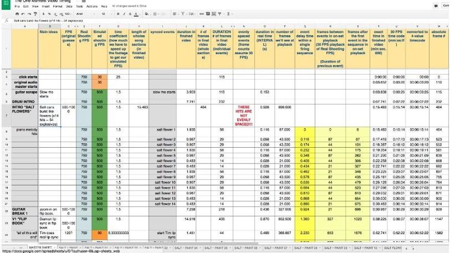 “Utilizado aceleradores muy precisos para programar varios cientos de eventos en una extrema rapidez de sucesión. Los aceleradores estaban sincronizados a los brazos robóticos de alta velocidad que golpeaban las cámaras a lo largo del escenario”, explica el vocalista del grupo, Damian Kulash, en su página web. También han publicado el documento Excel del minutado, que se basa más bien en microsegundos.