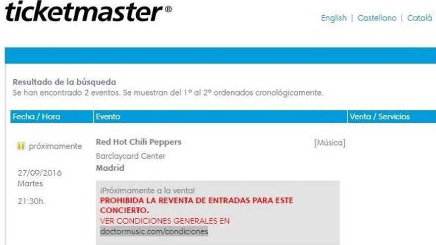 A pesar de que Doctor Music sopesó poner una denuncia ante la Audiencia Nacional, repiten con Ticketmaster en el concierto de los RHCP.