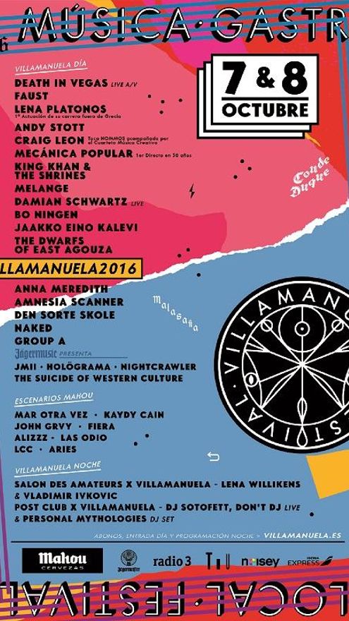 Alegorías bíblico-sexuales aparte, la cuarta edición del Villamanuela será los días 7 y 8 de octubre en Madrid. Es un festival multisala, multidisciplinar, multitarea, multijugos y todo lo multi que se pueda imaginar. La acción no se concentra en un escenario, sino en muchos. La música es una parte más de la velada, que incluye arte, gastronomía y exposiciones. Tan pronto tomar un botellín en cualquiera de los 50 bares del barrio como escuchar a Death in Vegas (que vendrán sin Sasha Grey, por cierto) o Faust.