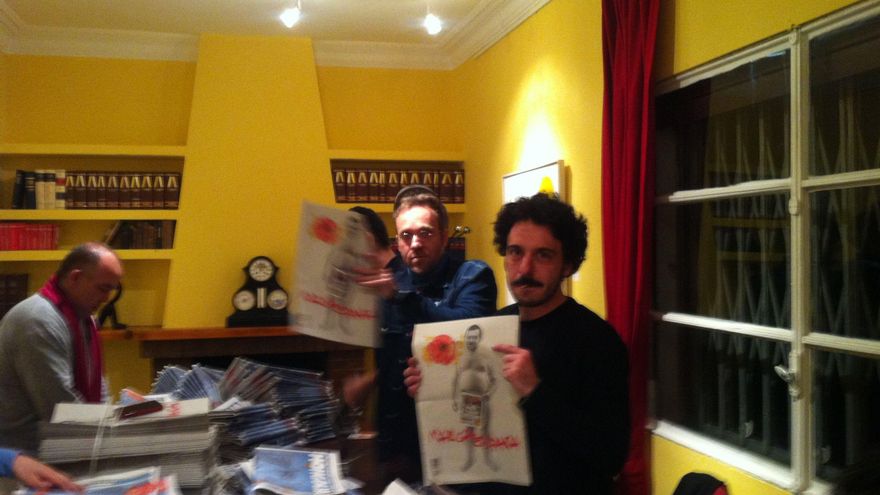 “Venga, más rápido, vamos”. El que ordena, siempre irónico, es Gonzalo Boye, apoyado sobre el marco de una puerta mientras los demás, a su ritmo, meten las revistas en los sobres que luego se enviarán a los suscriptores. Algunos irán acompañados por billetes-sobre de 50 euros hechos por el ilustrador Diego Quijano, y un suscriptor recibirá además un billete de 500 ilustrado por Mikel Casal.
