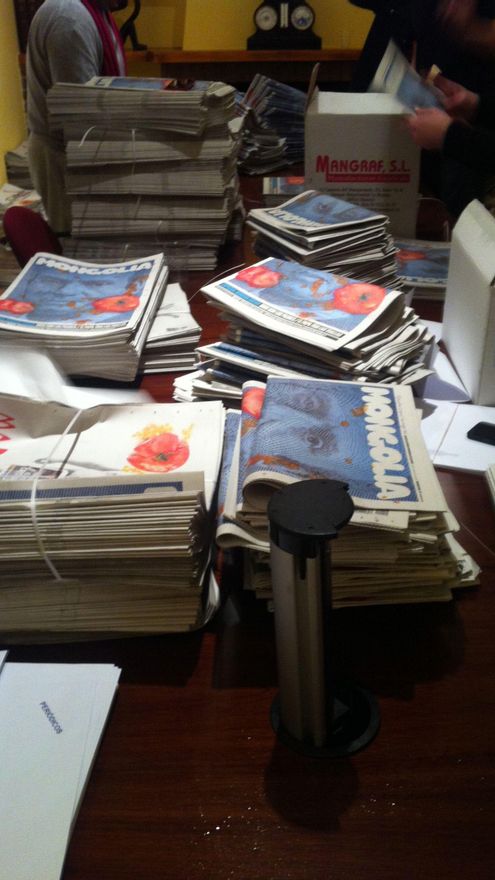 El primer año de la revista Mongolia podría resumirse con la evolución de los sobres que usan para enviar los ejemplares a sus suscriptores. Si al principio usaban la lengua, en el mejor de los casos barras de pegamento, ahora ya disponen de sobres con cierre adhesivo. Aun con el avance, nadie les libera de la tarea de ensobrar una vez al mes unos 1.400 ejemplares. Y esperan aumentar la cifra.