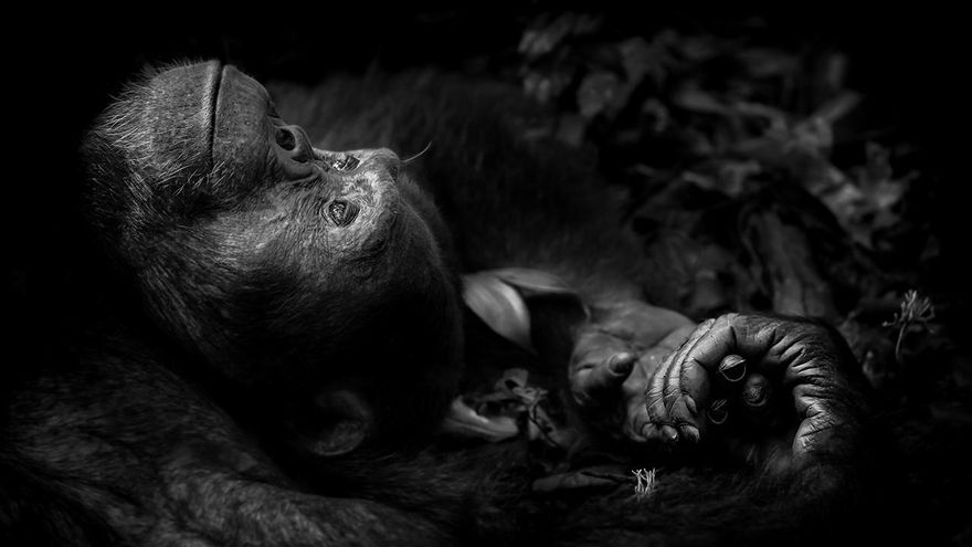 La obra titulada En homenaje a la especie muestra un rinoceronte negro muerto por un disparo con el cuerno cercenado. A los pies del animal caído, un gran charco de sangre. Es una imagen dura, que cuesta mirar, pero que demuestra que las fotos de naturaleza son mucho más que imágenes bonitas de animales.