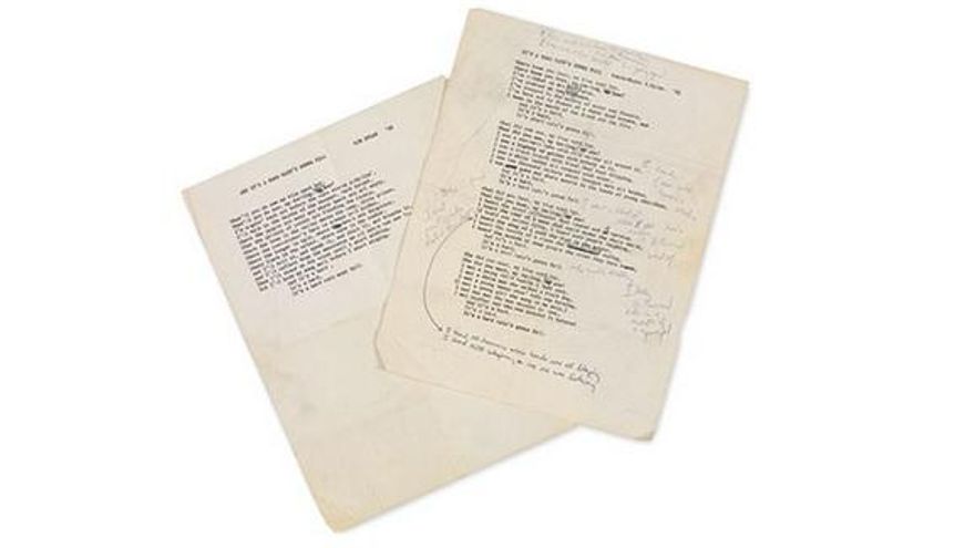 El manuscrito de la canción 'A Hard Rain's a-Gonna Fall' de Bob Dylan sale a subasta