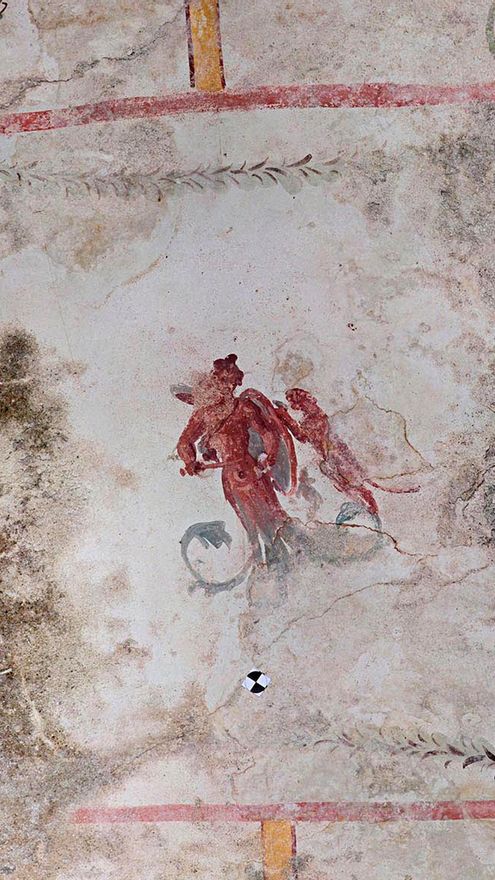 Son las típicas figuras con la que los romanos de aquella época decoraban las estancias y se repiten en otros lugares de la Domus, mandada construir por este emperador de la dinastía Julia-Claudia tras el destructor incendio del 64 d.C sobre la colina Opio de Roma.