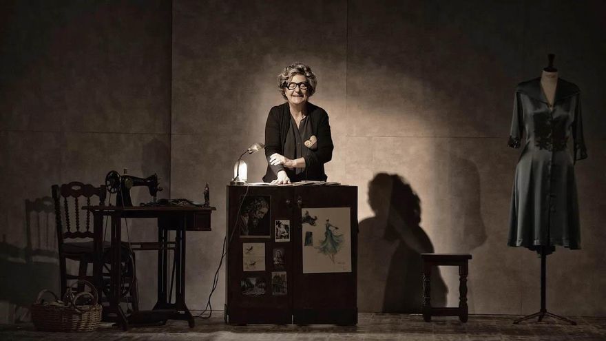 La actriz Rosario Pardo (Crónicas marcianas, Cuéntame) se mete en la piel ajada de Manresa y relata su vida a modo de cuento. Se lo narra al público como si fuese una clienta de su humilde atelier en Elche, donde trabajó hasta el final de sus días. Medio ciega y ayudada por unas gafas que le regaló Vicente Aleixandre, la septuagenaria no da puntada sin hilo, ni sobre el vestido azul en el que trabaja ni cuando recuerda cómo le arrebataron a su marido.