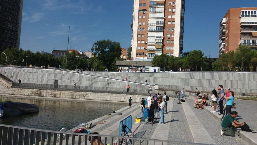 Otra vecina ha pedido que pusieran en funcionamiento los chorros del estanque, “para que le llegue más agua, con los cubos no va a ser suficiente”. Sin embargo, la gran incógnita ha sido averiguar cómo había podido llegar hasta el Manzanares. La mayoría de los visitantes han coincidido en señalar que había aparecido la noche anterior. “Yo vi cómo la bajaban en una grúa porque vivo cerca de aquí, pero no pensaba que fuera de verdad. Y mírala, no paran de echarle agua”, desvelaba un hombre.