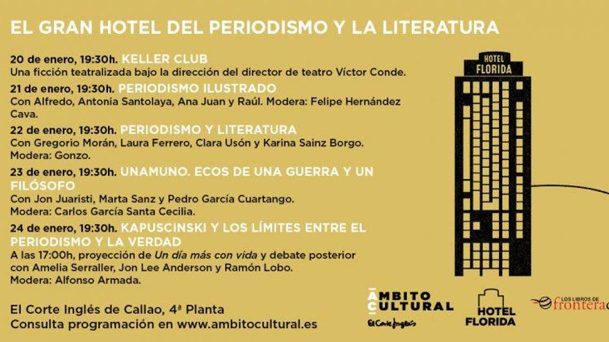 Estos días, en la cuarta planta de El Corte Inglés de Preciados, a las 19.30 horas (“salvo excepciones”), se hablará de lo que aportan las historietas al periodismo, de los límites entre la ficción y la realidad, de la obra de Unamuno -“un autor que no se lee tanto como se debiera”- y de la idoneidad de Kapuscinski como mito periodístico. Lo harán, entre otros, Gregorio Morán, Clara Usón, Karina Sainz-Borgo, Marta Sanz, Pedro García Cuartango, Ramón Lobo o Jon Lee Anderson.