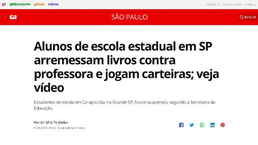 Estos hechos tuvieron lugar el 30 de mayo de 2019 y el vídeo se difundió en redes sociales un día después de los hechos. Además, según afirmaron los medios, las imágenes fueron grabadas por un alumno de 7º año de la escuela María De Lourdes Teixeira, en el municipio brasileño de Carapicuiba, mientras los compañeros interpelaban a la profesora y le tiraban cuadernos.