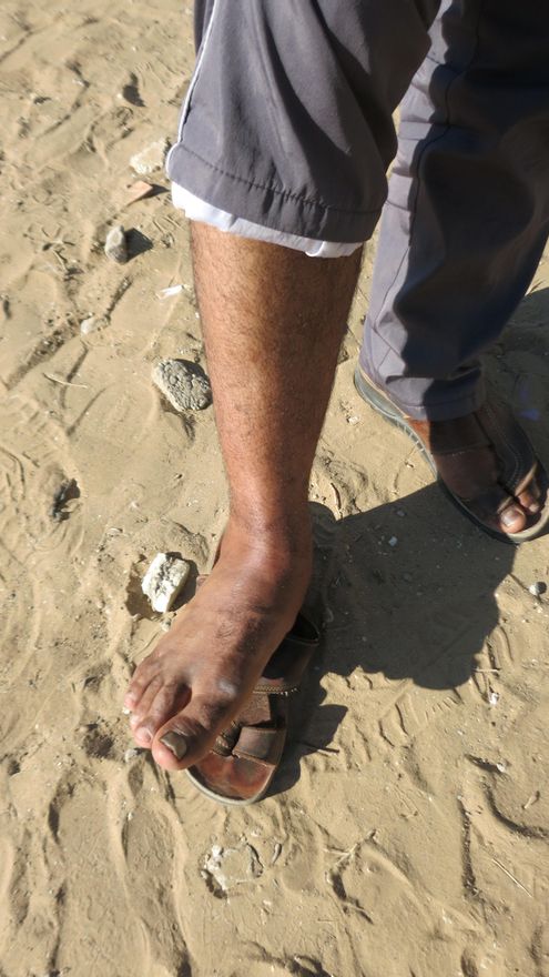 Tasam también ha intentado reconstruir su pierna, rota entonces por varias partes. Ya no tiene la escayola que le cubría la extremidad desde el muslo hasta el tobillo, pero se queja de fuertes dolores en los tendones.