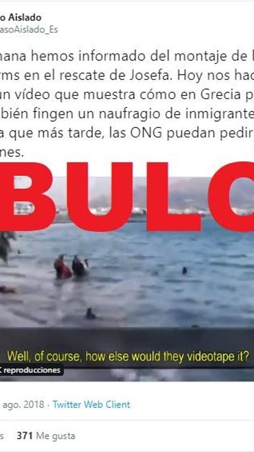 Nos habéis hecho llegar estas imágenes en las que varias mujeres con velo se meten en el mar junto a otras personas flotando cerca mientras que desde la orilla un equipo de rodaje les envían directrices. Sobre estas imágenes diferentes usuarios y la web Caso Aislado han asegurado que este vídeo “muestra cómo en Grecia parecen [sic] que también fingen un naufragio de inmigrantes en alta mar para que más tarde, las ONG puedan pedir donaciones”. Esto es un bulo.