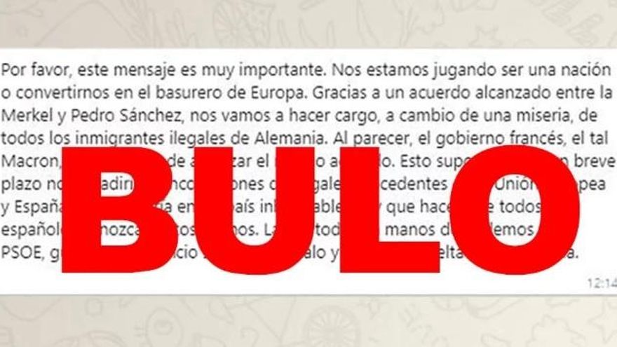 “A cambio de una miseria nos vamos a hacer cargo de todos los inmigrantes ilegales de Alemania”, decía un mensaje de WhatsApp que nos llegó a la redacción de Maldita.es en agosto de 2018.