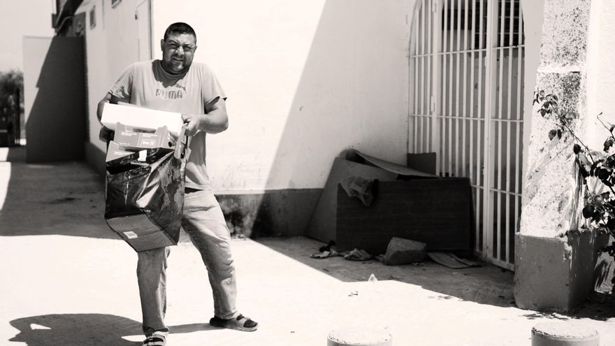 Las bolsas, a rebosar de comida, cuestan un euro, pero no todos pueden pagarlo. Algunos traen solo unos céntimos y otros absolutamente nada, pero todos se vuelven con su bolsa. “Mañana pago”, bromea uno de los vecinos del Gallinero. “¡Un euro es muy caro macho! Tengo 30 céntimos”, suelta otro sonriendo, sabe que la bolsa que se lleva supera con creces los 10 euros.