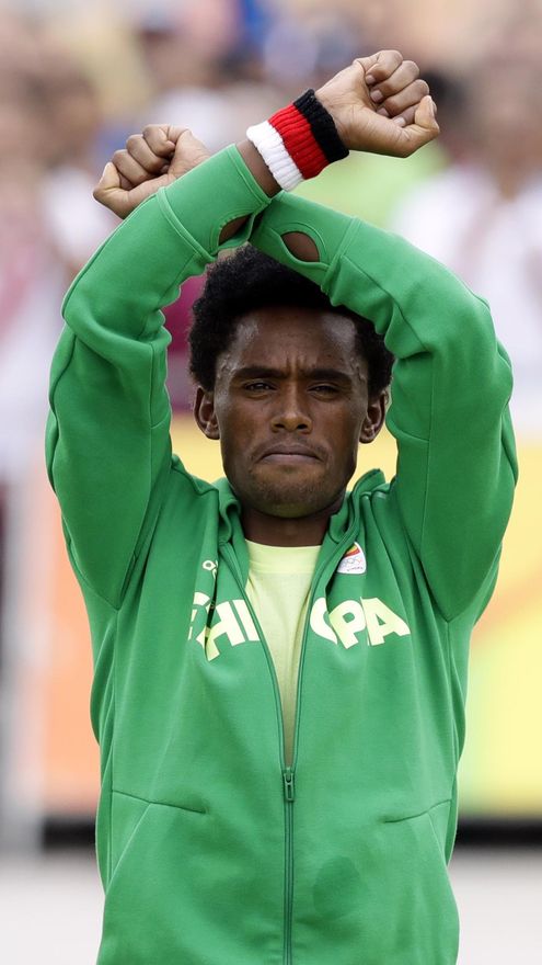 La otra imagen fue el gesto del atleta etíope Feyisa Lilesa: tras cruzar la línea de meta en segundo lugar en el maratón, alzó los brazos en forma de 'x' en señal de protesta contra el gobierno de su país y para mostrar su solidaridad con el grupo étnico Oromo, al que pertenece.