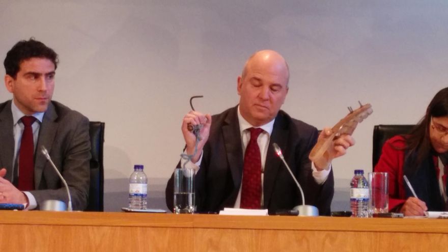 Una cangrejera con dos tornillos en la suela. Un garfio con varias cuerdas colgadas. Alzando ambos elementos, el comisario de Derechos Humanos lanzó un mensaje indirecto a las constantes declaraciones del Gobierno, que describen estos instrumentos como “armas” para “hacer daño”: “No son armas. Son herramientas que utilizan para trepar desde la instalación de una malla que impide introducir los dedos en la valla de Melilla”, recordó. “Demuestra hasta qué punto llega el instinto de cretaividad de una persona desesperada por emigrar. No por construir una valla más alta se va a solucionar el problema”.