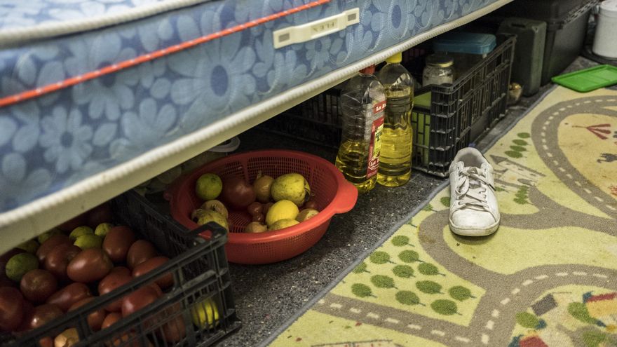 Debajo de las camas algunos guardan la comida ante la falta de neveras. Dos duchas para compartir entre decenas de personas. Una entrada que da a la calle con algunas sillas destartaladas como espacio común.