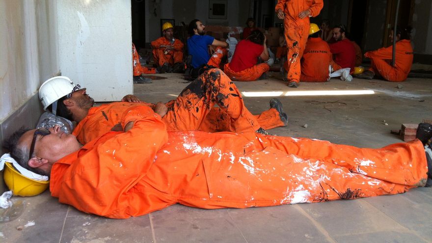 Ágiles, convencidos, contundentes, con los últimos coletazos de los nervios previos en sus estómagos, cien activistas cruzan la verja y se introducen en lo que pudo ser un complejo hotelero. El agente de seguridad privado hace el amago de acercarse, pero recula. Son demasiados, muchísimos más que durante las cinco experiencias anteriores de Greenpeace en El Algarrobico. Los conoce. “¿Otra vez aquí?”.