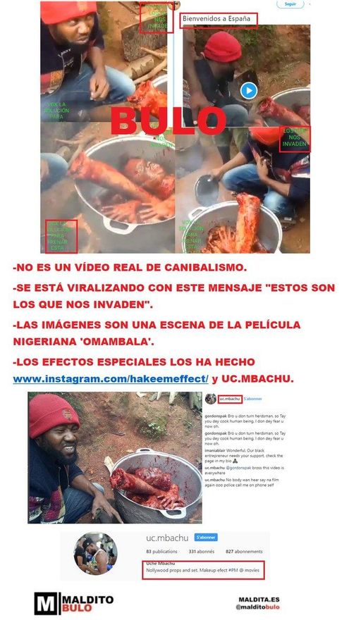 Lo sucedido no era en España y tampoco ha pasado en la vida real: todo es pura ficción. Corresponde al decorado elaborado por el creador de efectos audiovisuales Hakeem para la película Omambala en Nigeria. El artista grabó un vídeo en su perfil de Instagram mostrando el set y aclarando cómo trabajan. Además, en un post pidió a los blogueros que “empezaron todo esto”, que clarificasen la desinformación vertida.
